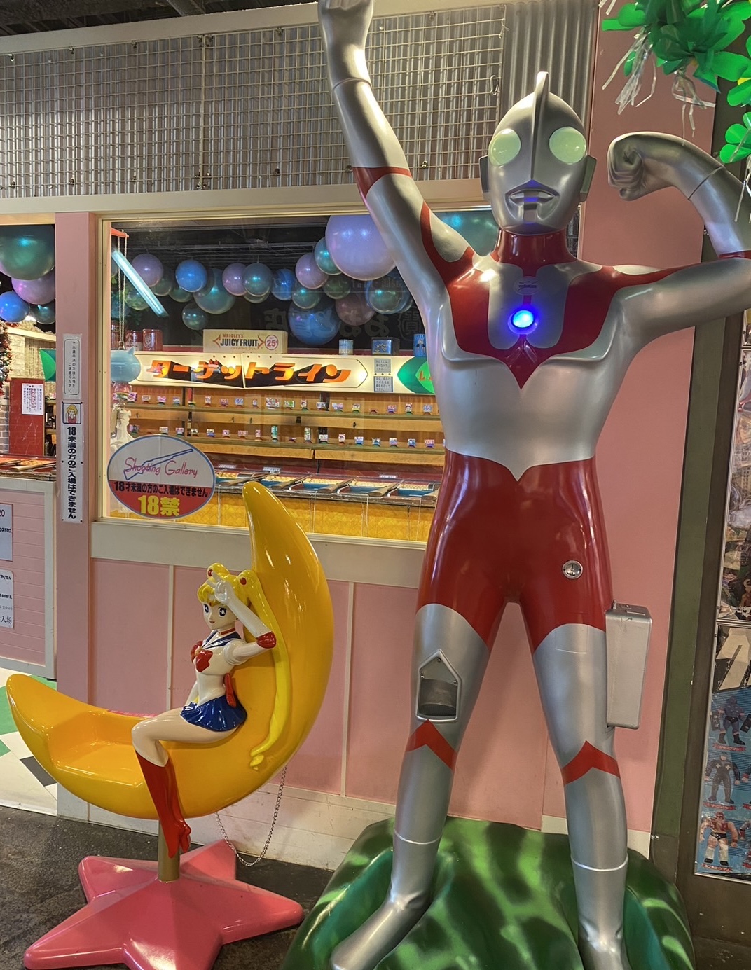 昭和30年代製、日本最大級の射的を体験しよう!! コルク玉5発 300円(税込)。 当てて落とした景品が貰えます。 ぬいぐるみ等の大きい景品は、各番号の的を落とすと交換できます。 ※風営法による条例により、18歳未満のお客様はご入場できません。