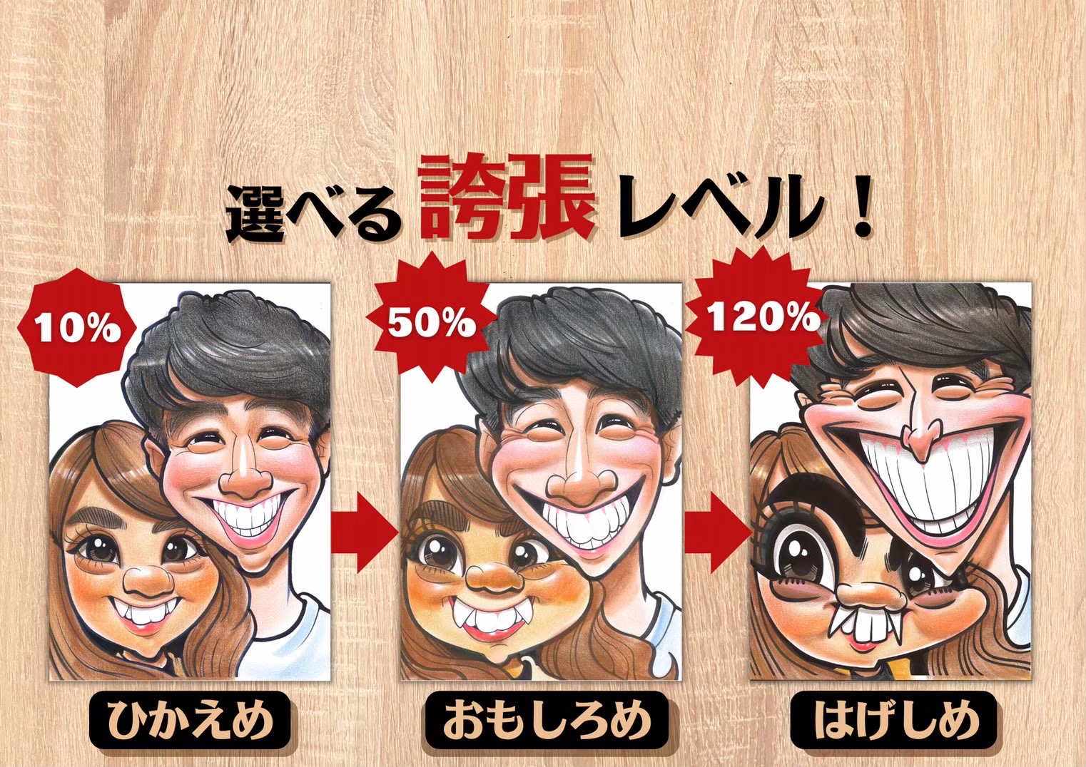 特徴をユニークに表現する似顔絵、カリカチュア!! 「古き良き、昭和のあの頃にタイムスリップ!」をコンセプトにつくられた「爆笑似顔絵商店」です。 他にはない爆笑似顔絵でオリジナルグッズやコラボ商品も多数ご用意しております。 制作時間はお1人様5~10分!お写真からも描けるのでプレゼントにもオススメです。